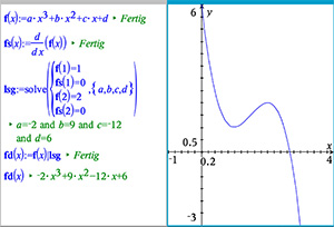 Für jede „Steckbriefaufgabe“ alles neu aufschreiben – das kann man sich sparen, wenn man wie hier z. B. verschiedene Applikationen des CAS sinnvoll miteinander verknüpft. Was übrigbleibt ist die Struktur der Steckbriefaufgabe, die Mathematik. Die zahlreichen Algorithmen (Ableiten, Lösen eines 4x4 Gleichungssystems) werden vom CAS übernommen.