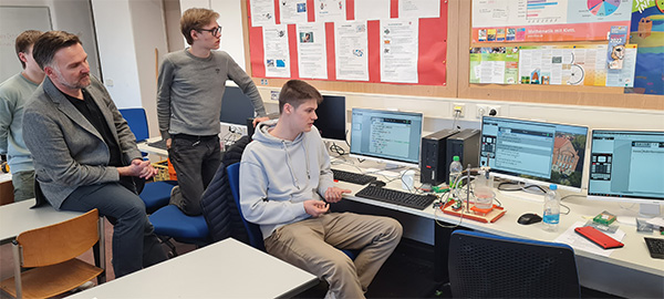 Im ersten Teil des Workshops standen grundlegende Prinzipien der Programmierung mit Python im Mittelpunkt. Teil zwei beschäftigte sich mit der Funktionsweise von Sensoren, Teil drei mit der Datenübertragung per Bluetooth. Derart vorbereitet starteten die Teams ihre fünf Projekte. Verbindendes Element war die TI-NspireTM CX CAS Technologie auf dem Handheld oder dem PC und damit ein Werkzeug, das an Schulen im Unterricht der MINT-Fächer ohnehin einen festen Platz hat.
