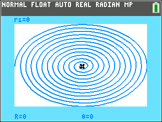 Press the y= key. In r1 enterθ by pressing the "X,T,θ,n" key. Then press the window key. Then, in θmax try inputting 5π. Then, press the zoom key. Now, you will want to either press 0 or arrow down to ZoomFIT, either way works. Desire a bigger spiral? Try changing θmax to a bigger number.