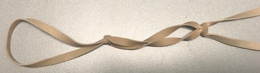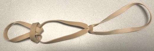 - Connect rubber bands together by folding one into another (see pictures below), and looping one rubber band through the loop of another. Repeat this pattern until you have 10 to 20 connected.
