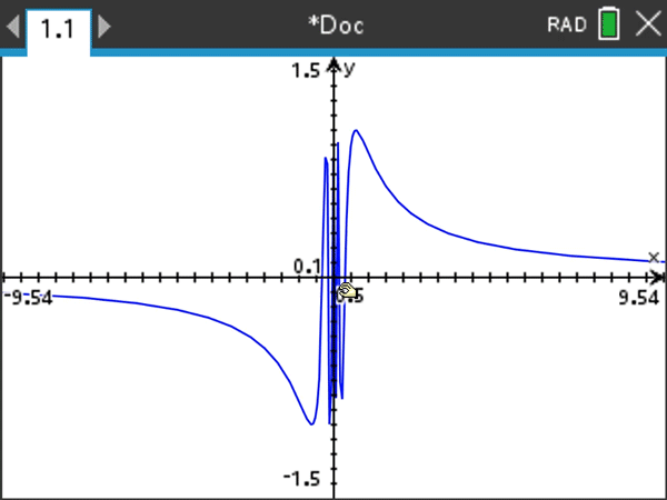 This is yet another standard example, but it really takes on life if you zoom in horizontally. Be sure to keep the vertical y range of the window the same, but investigate smaller and smaller horizontal x ranges centered at 0.