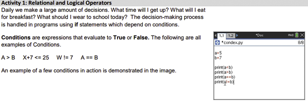 Like I said above, I could go on and on about all the resources in the computer science activities page, but I think I’ve shown enough to give you some ideas. I hope you find them as useful in your classes this year as I have. I know they have given me a resource for individual and small group exploration and learning. They’ve also given me a teaching tool that allows me to work more one-on-one with my students while still moving the entire class forward. With Computer Science Education Week just around the corner, the timing is right! Go ahead, explore the TI resources at your own pace.
