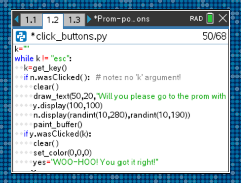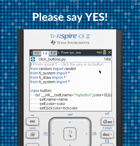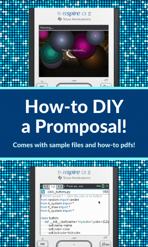 It’s prom season, and it can be hard to keep your students from daydreaming about prom night. How about an activity that will grab their attention while you sneak in some programming skills? Plus, be sure to encourage your students to participate in our TI Promposal Contest. It will provide extra motivation for your students to push their creativity. Encourage your students to enter for a chance to win some cash for their prom night!*