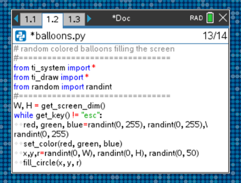 Are you or your students new to Python? For a quick introduction to graphical programming in Python be sure to study the TI Codes materials, especially Unit 5, which briefly introduces some of the unique TI modules: ti_plotlib and ti_draw. Using the drawing functions found in the ti_draw module makes it a breeze to quickly produce custom graphics screens. There is also new material under the Python modules section that deals specifically with the custom ti_* modules.