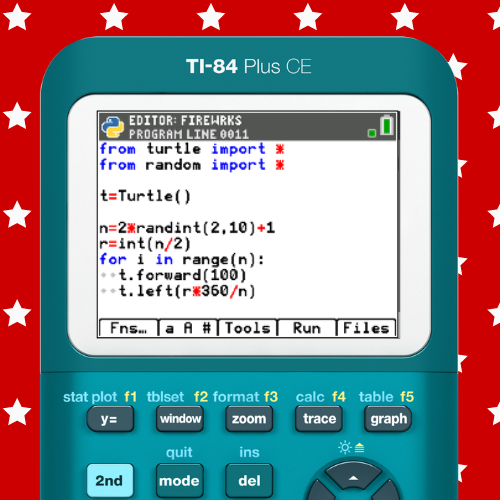 Here are three patriotic-themed activities you can try using Python programing on the TI‑Nspire™ CX II and the TI‑84 Plus CE Python graphing calculators.