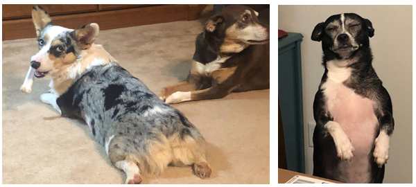 Of the many dogs in our house, Holly and Blue are the two dogs that best qualify for the descriptor “round.” Holly is a 7-year-old Chihuahua with a short temper who comes in at a staggering 17 lbs. Blue is a 5-year-old corgi with a friendly personality and a loud bark, who is beginning to develop the dreaded “belly hang down” of a middle-aged dog.